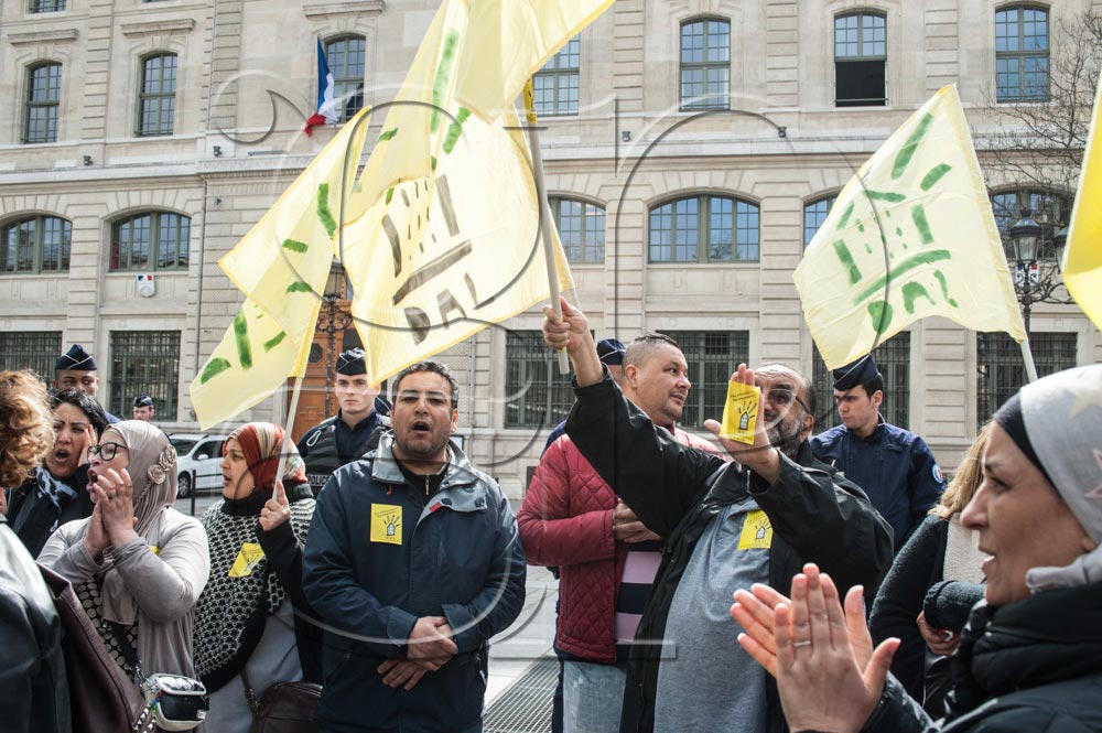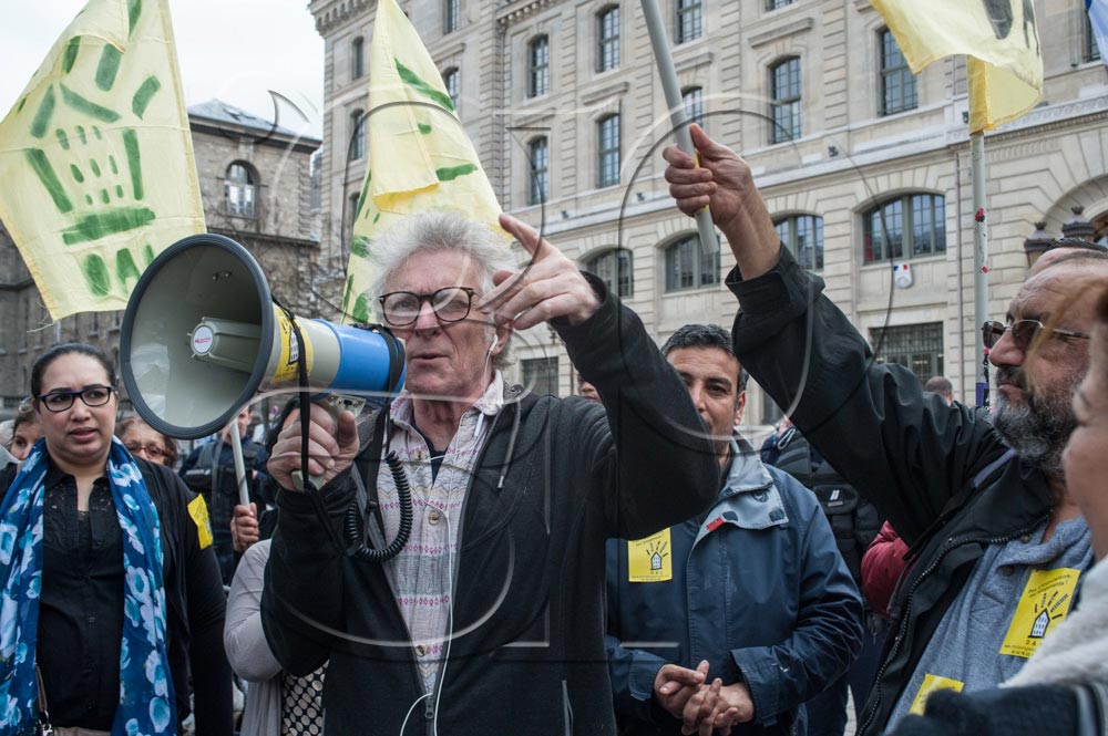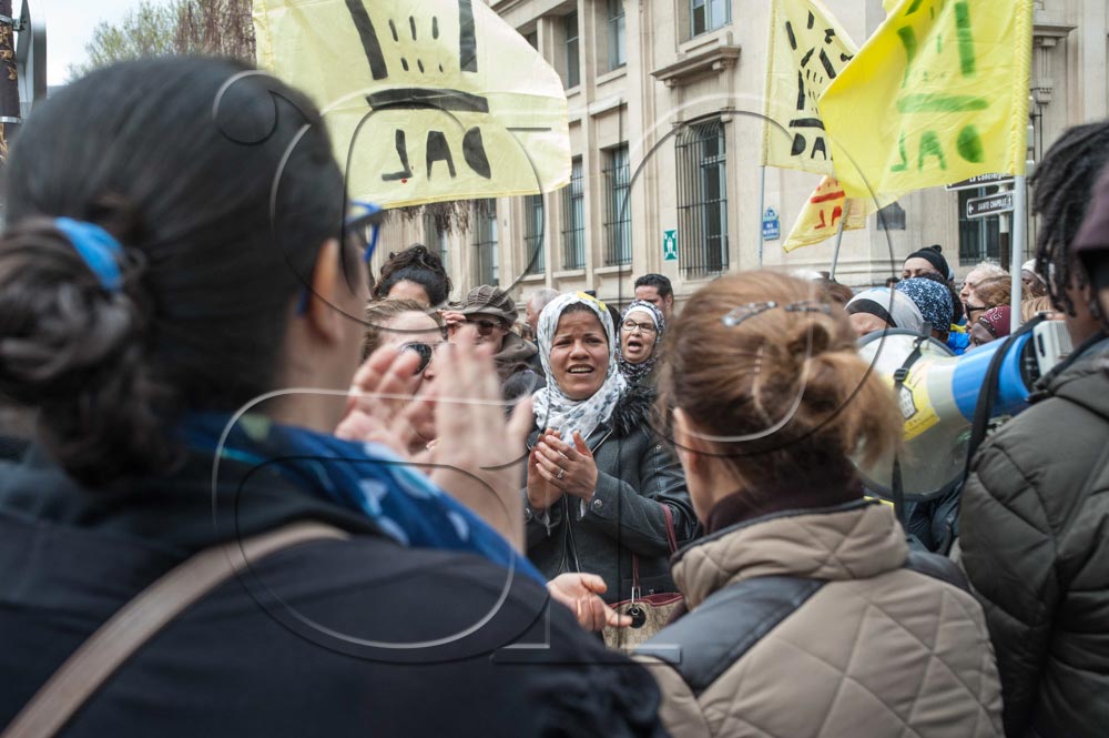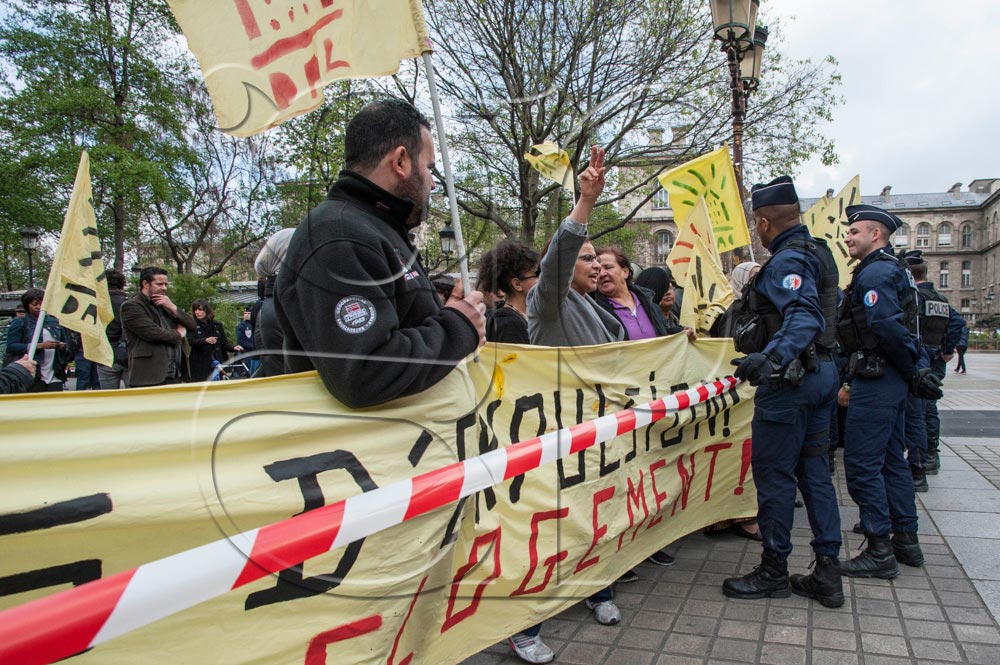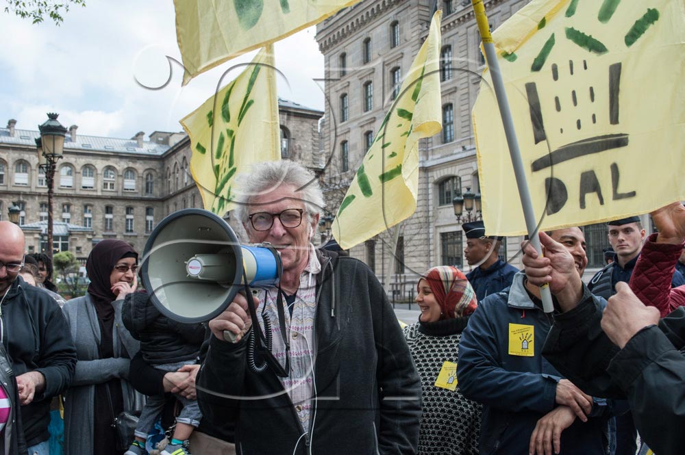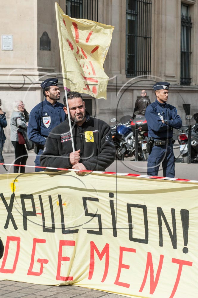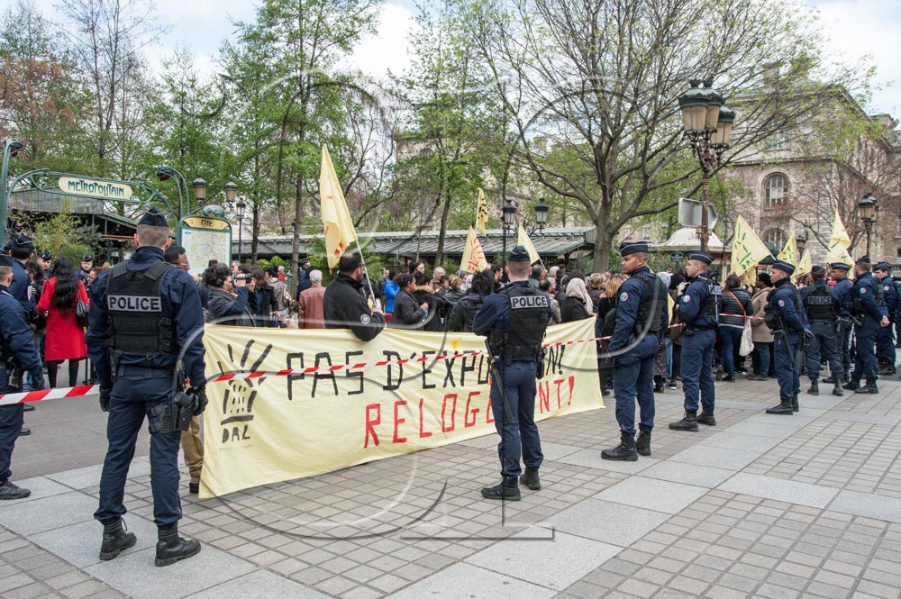 Paris le 5/04/2017- Manifestation de l’association DAL : Action “Stop aux expulsions” devant la Préfecture de police de Paris.
