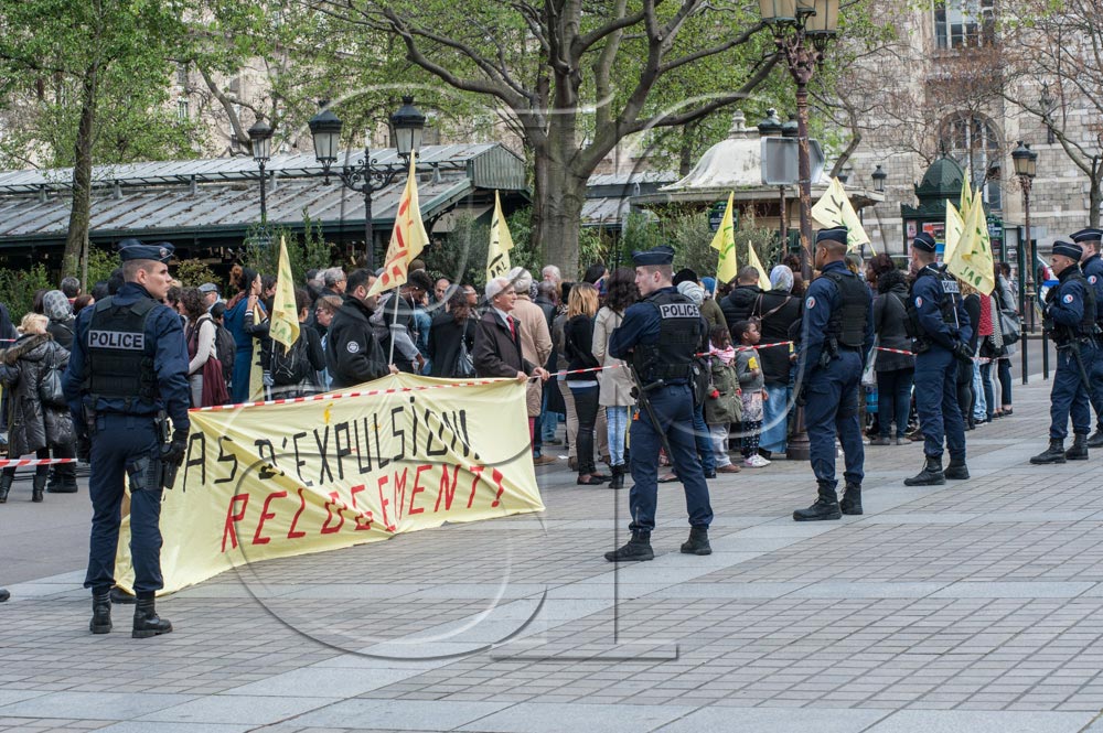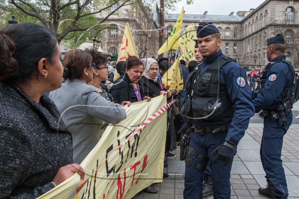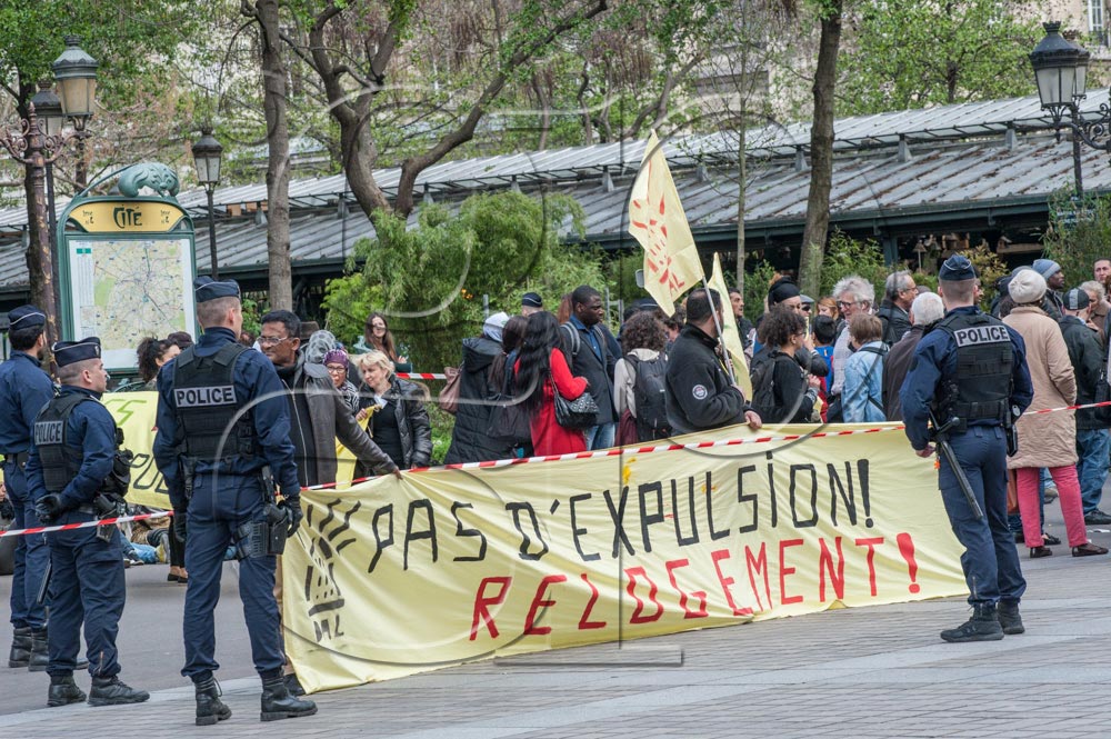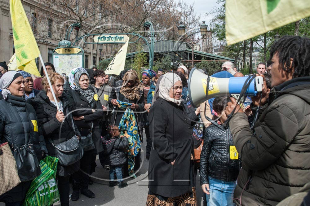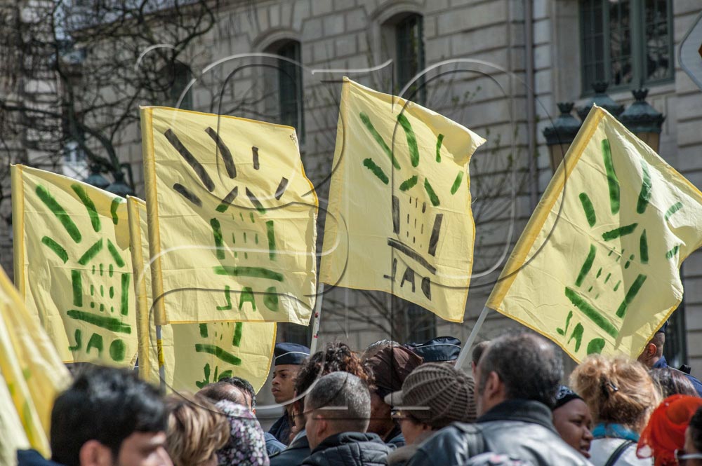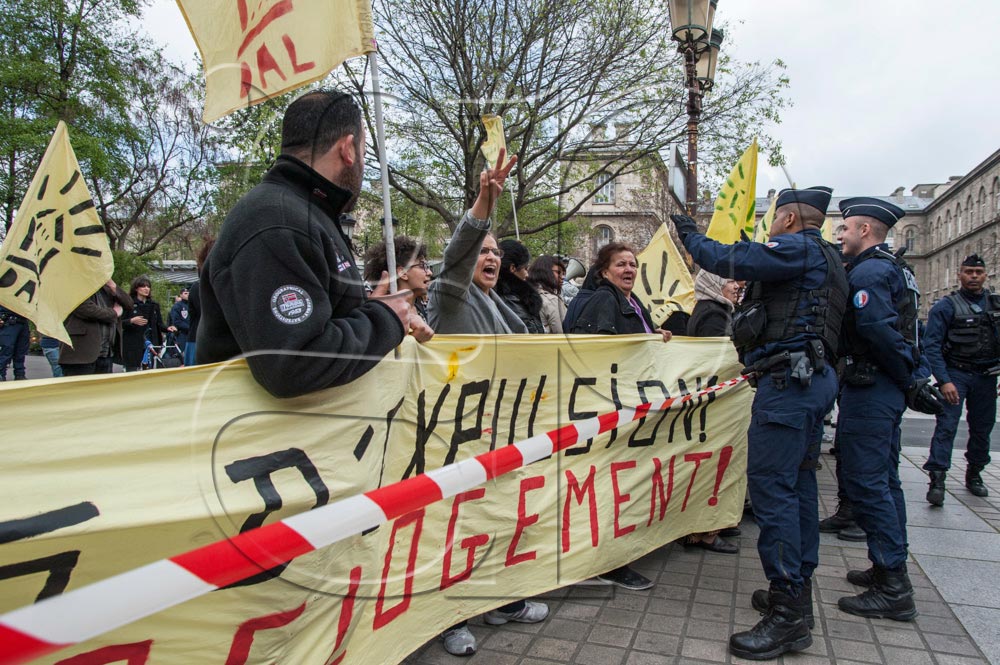Paris le 5/04/2017- Manifestation de l’association DAL : Action “Stop aux expulsions” devant la Préfecture de police de Paris.