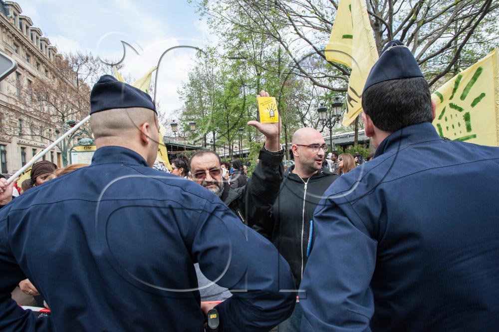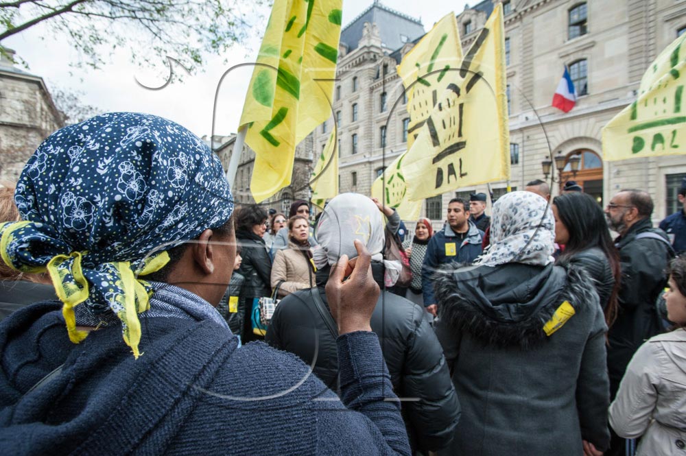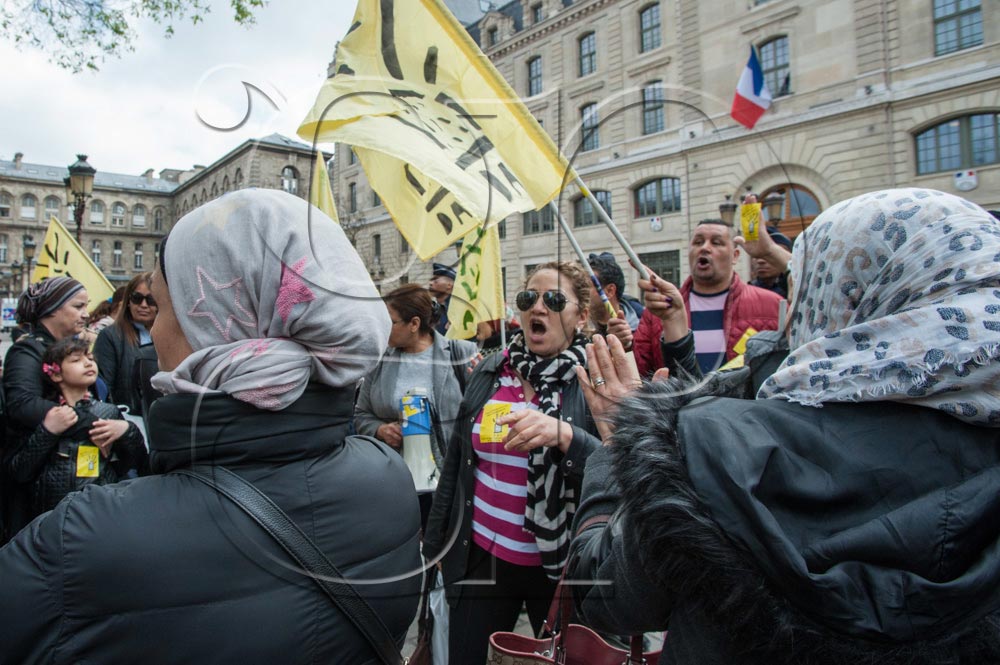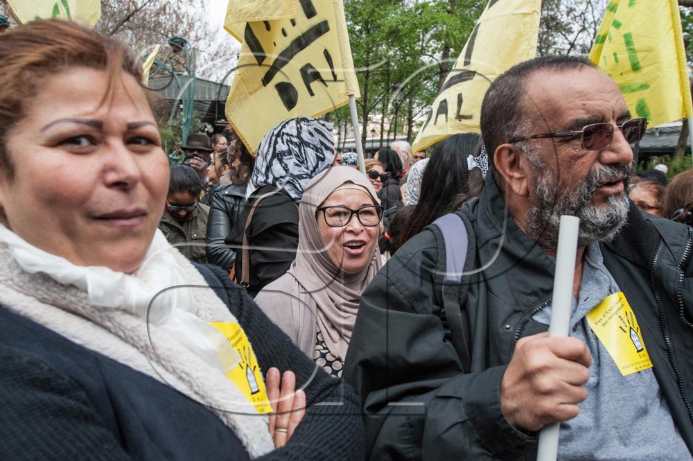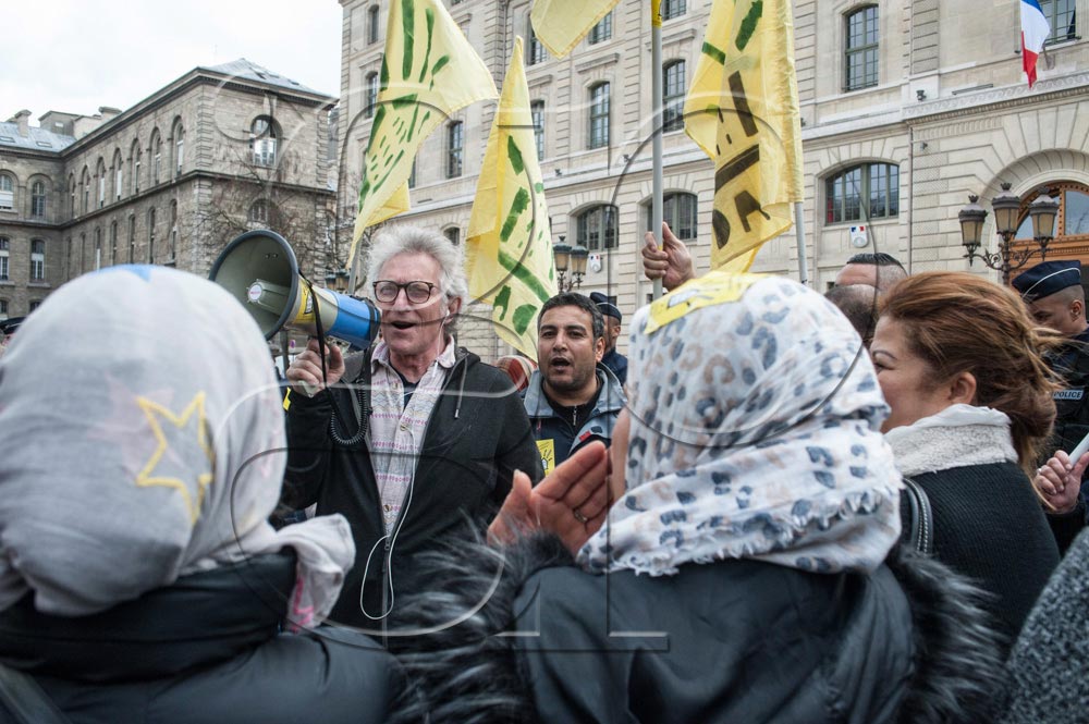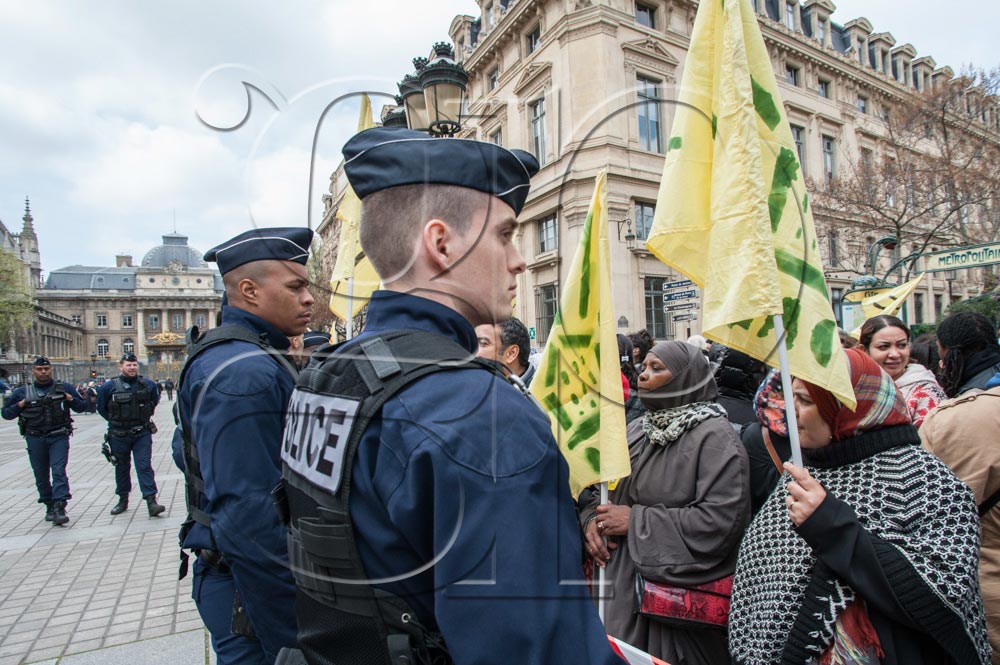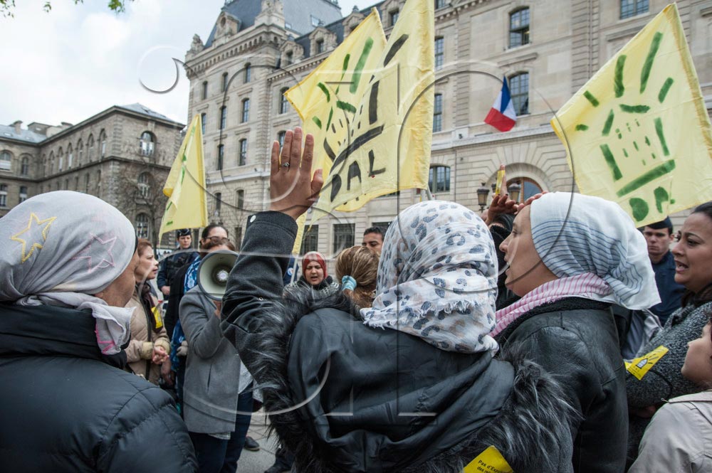Paris le 5/04/2017- Manifestation de l’association DAL : Action “Stop aux expulsions” devant la Préfecture de police de Paris.