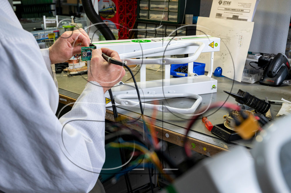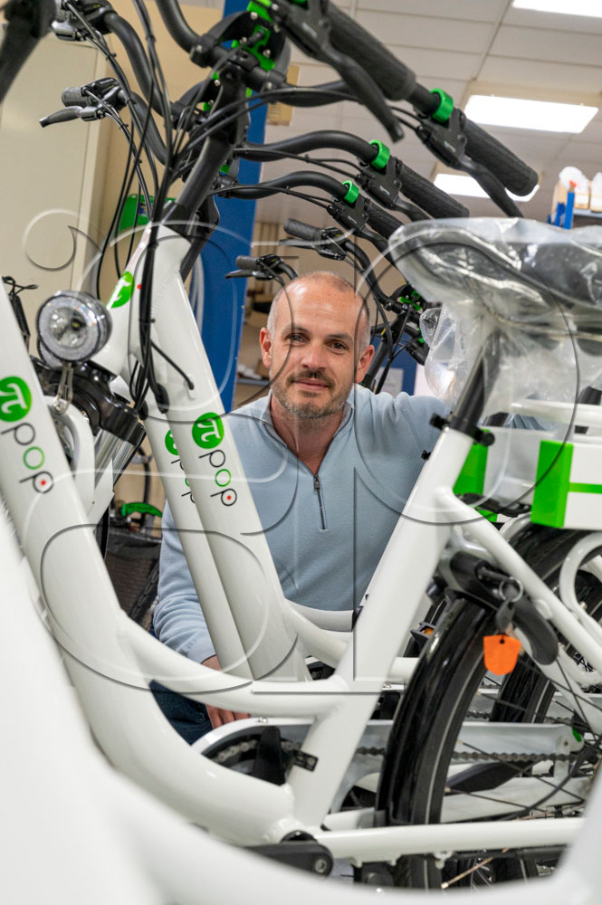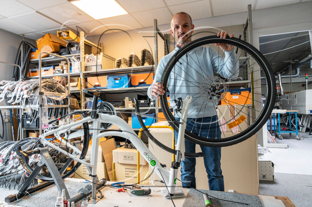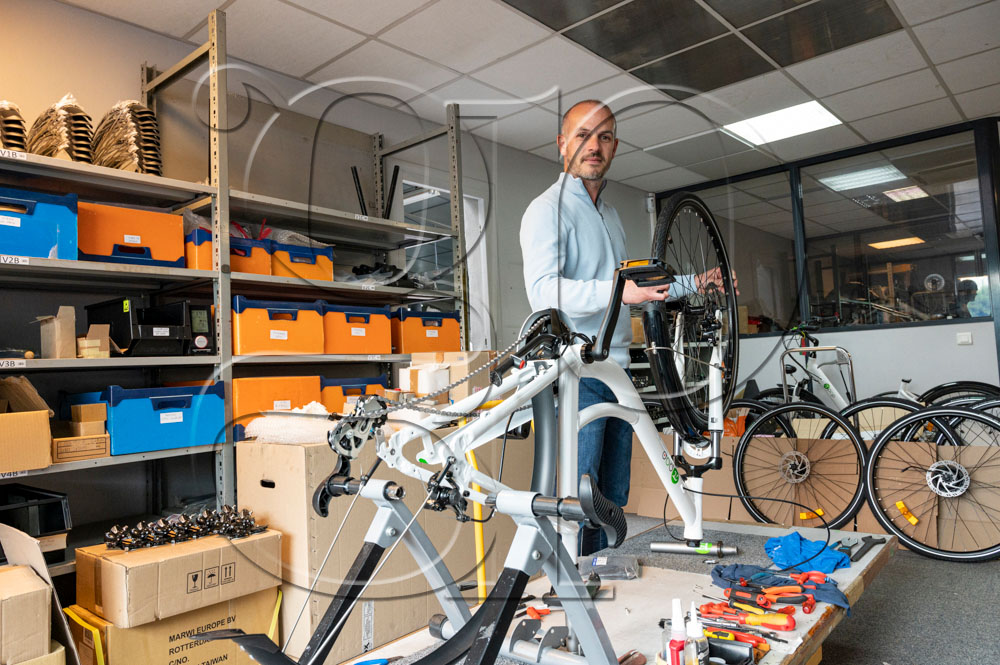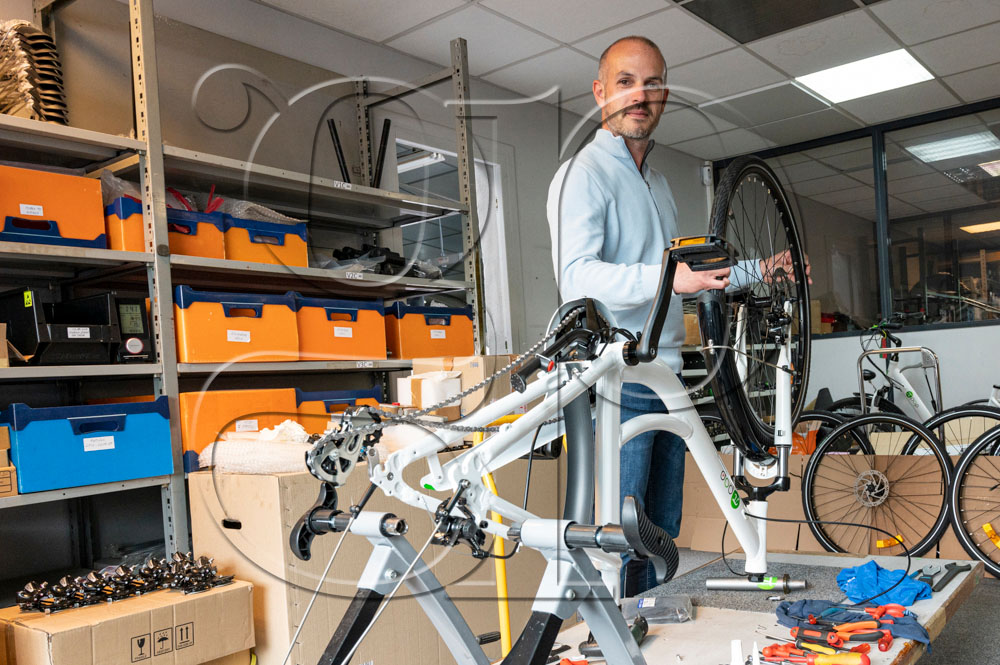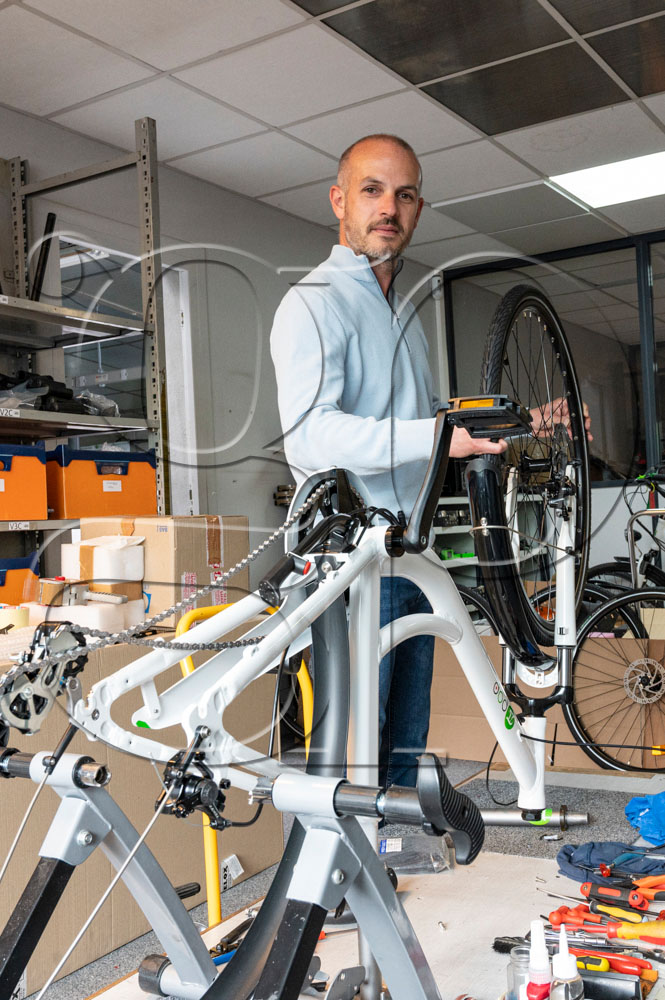 M. Adrien Lelièvre à l’atelier de montage du vélo.