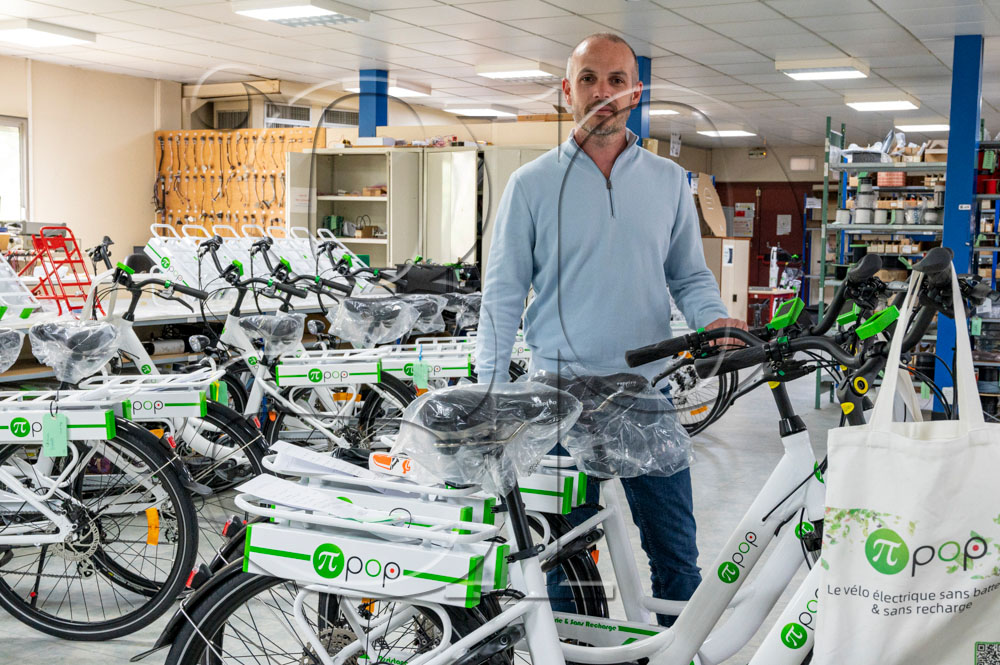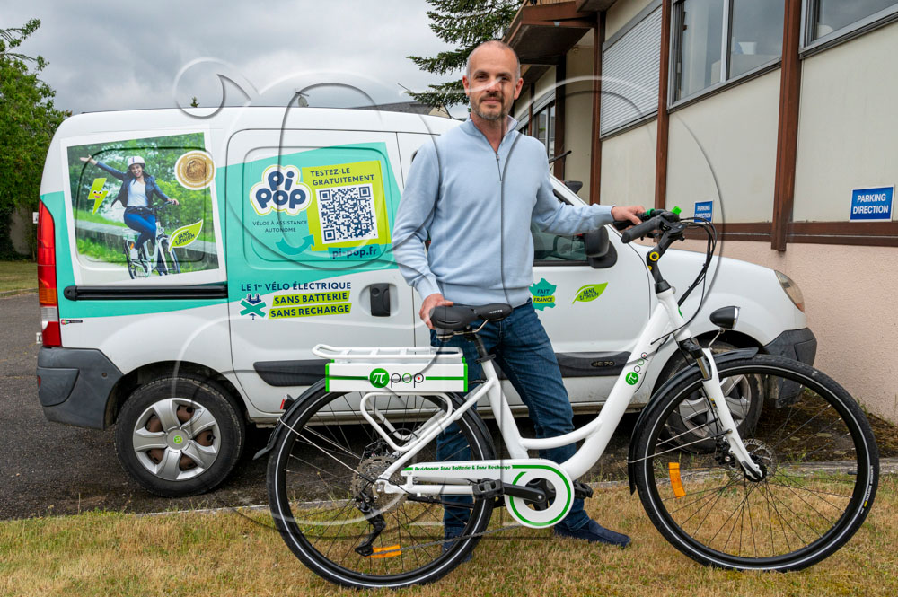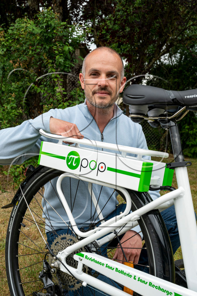 Olivet le 21/05/2025 – Medaille d or au concours Lepine 2024 le velo Pi-Pop fonctionne sans batterie, Adrien Lelievre, formation d ingenieur mecanique a travaille depuis 2016 pour mettre au point et creer son velo Pi-POP, fabrique a Olivet dans le Loiret, le velo est en vente depuis 2022.